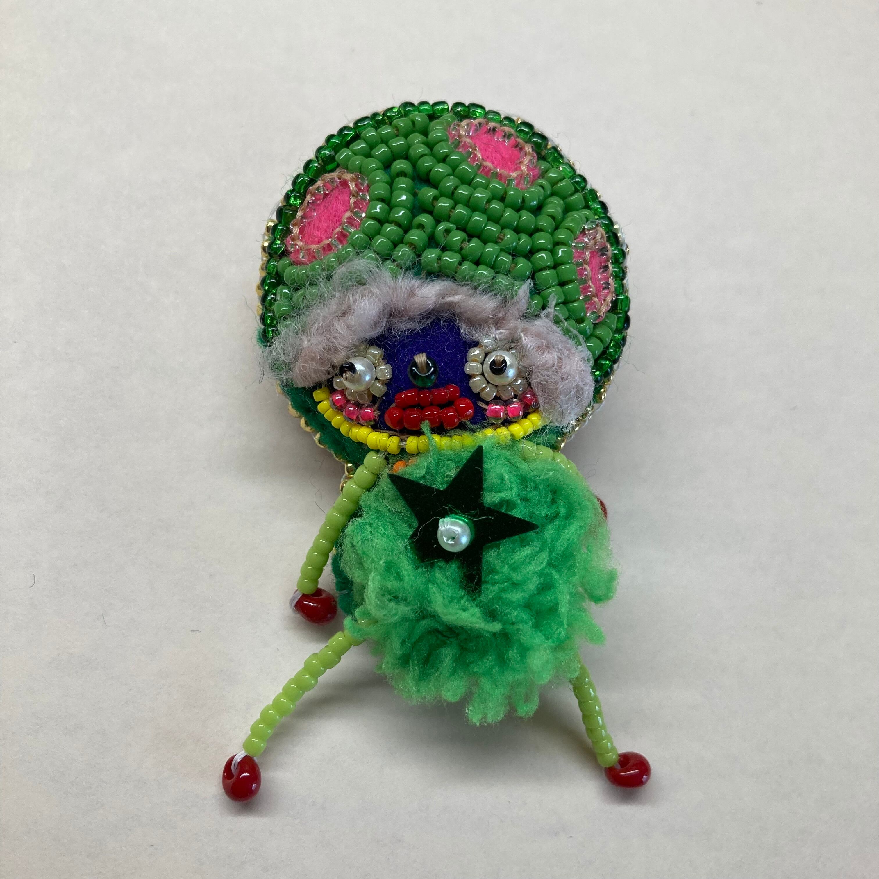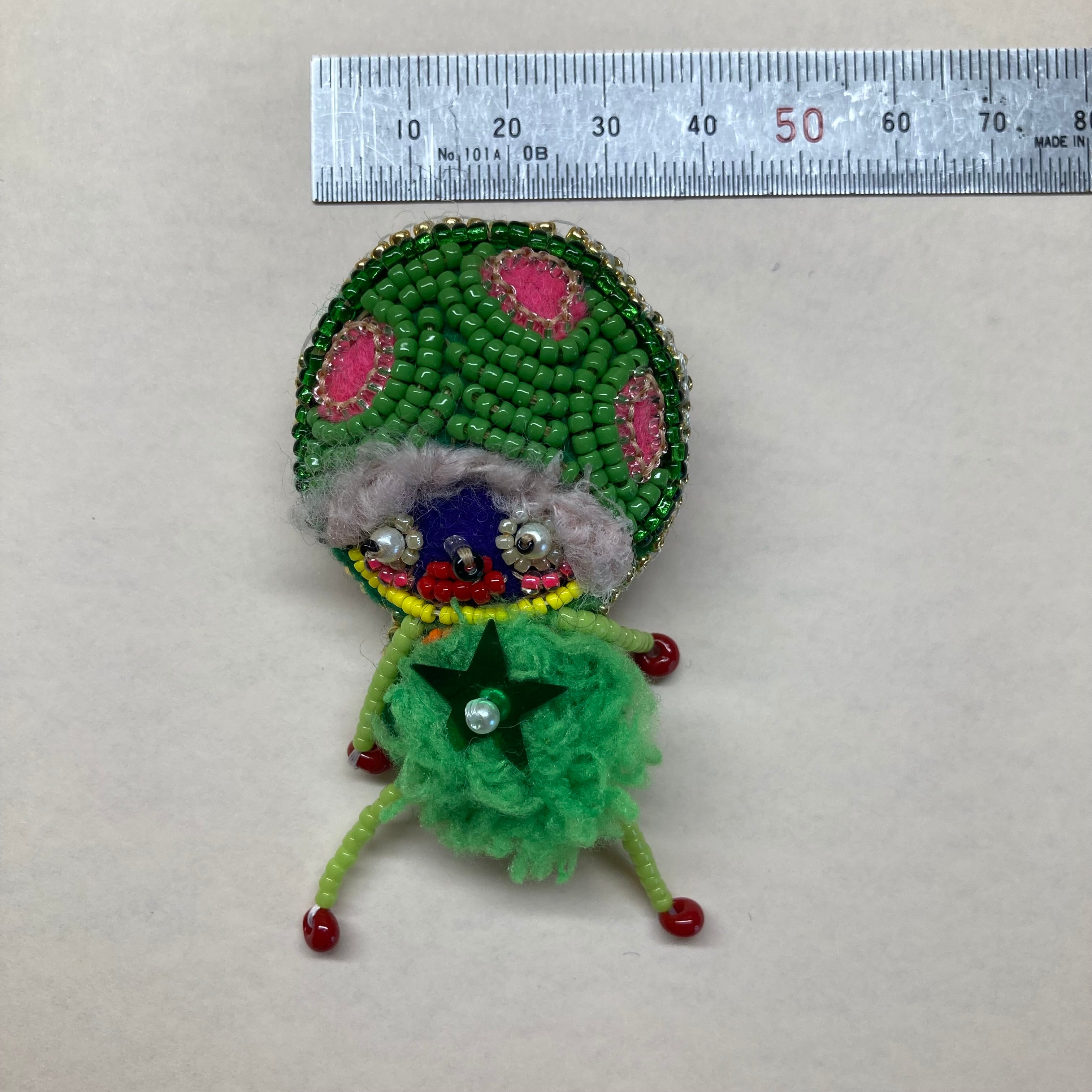 ハンドメイドブローチ 毒キノコレンジャー みどり