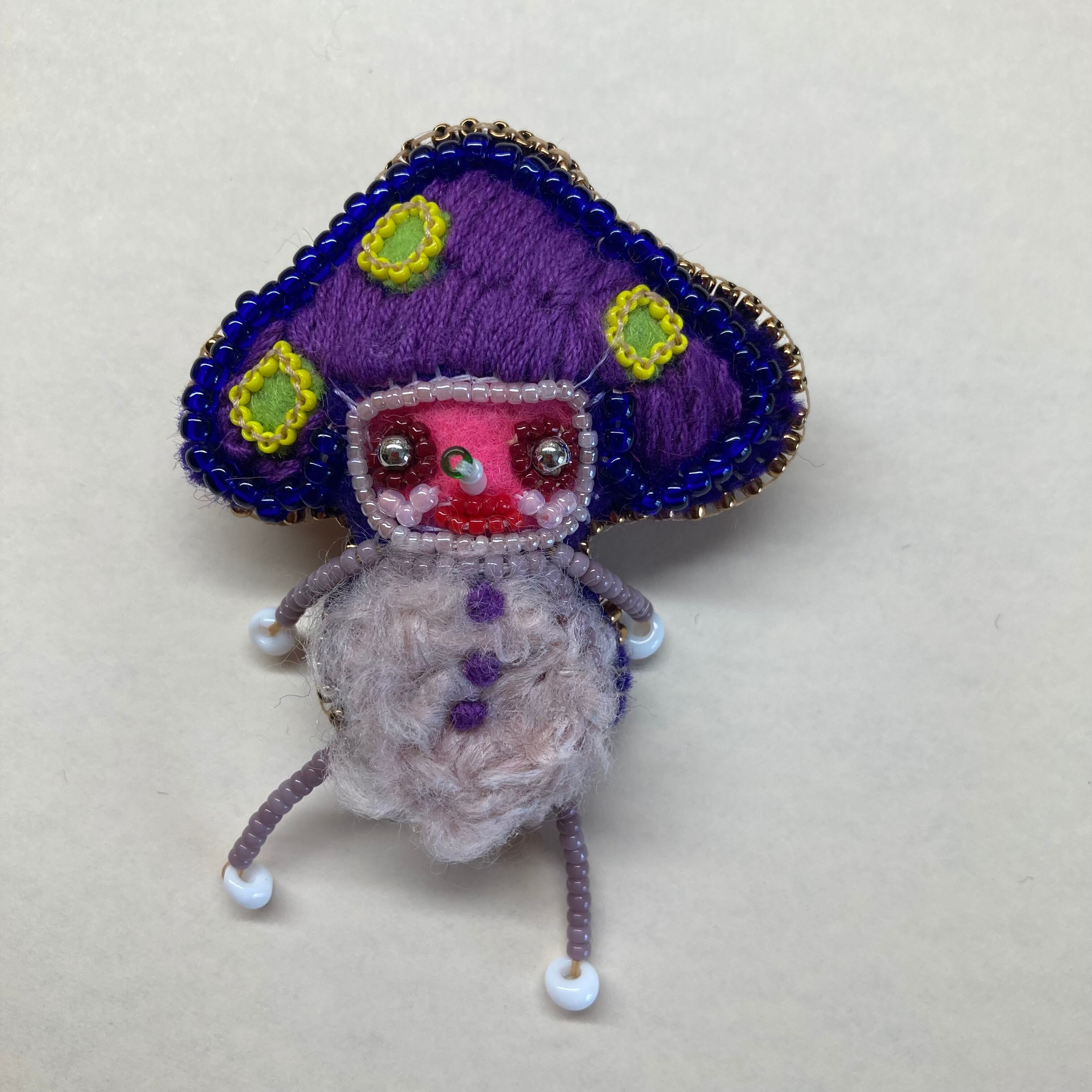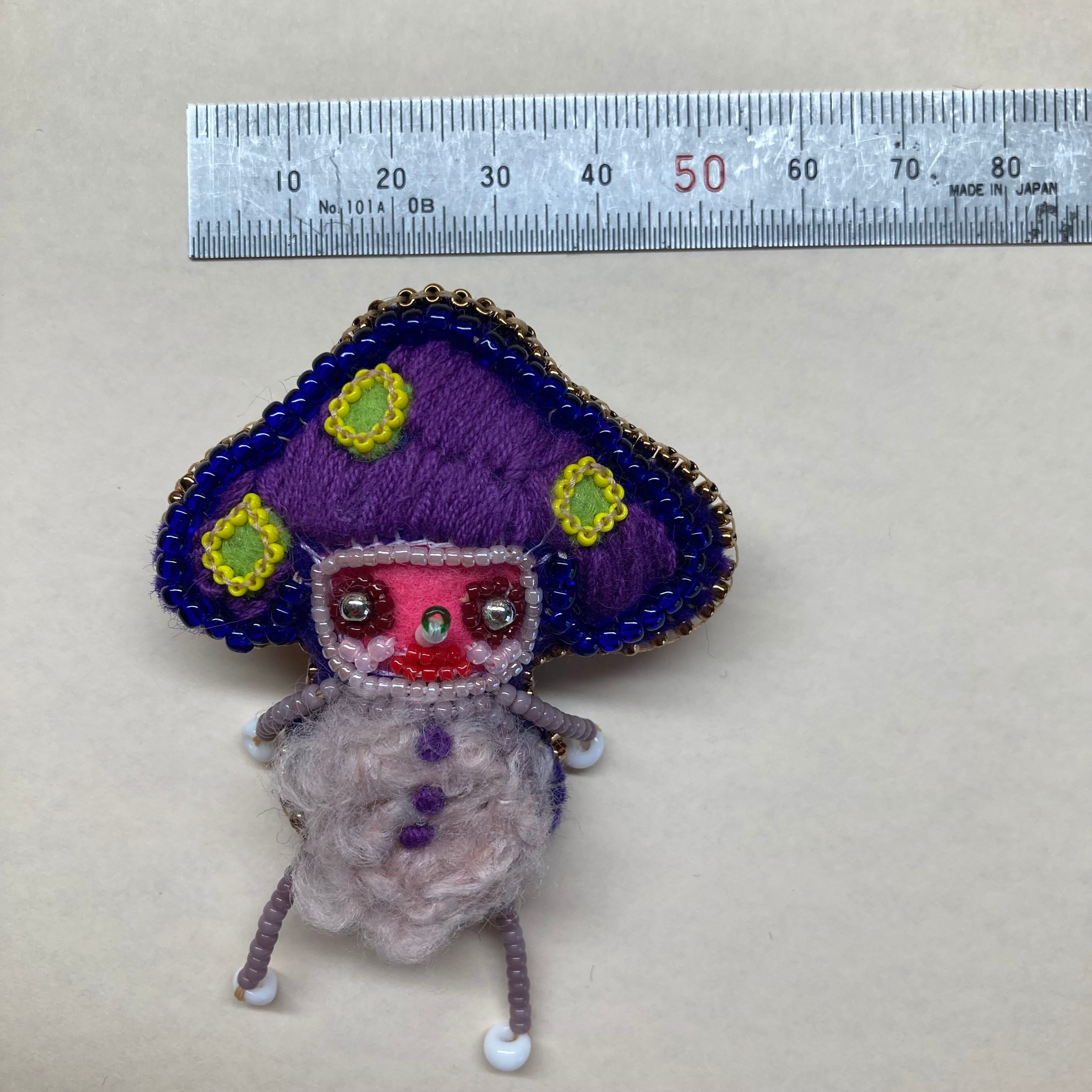 ハンドメイドブローチ 毒キノコレンジャー 紫